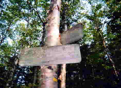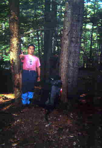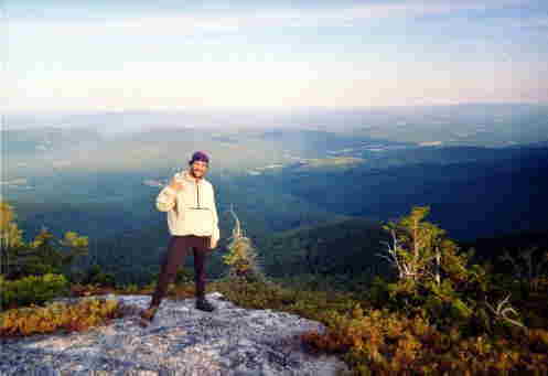 今日のターゲットはシェルバーン・モリアン・マウンテンである。この日はナビゲーターを任された。地図は2万4千分の1。地図もコンパスも英語は必要ない。「任せてくれ。」である。このグループは役割分担がはっきりしていないので、自然にリーダーになる。昨日のがむしゃらな歩きから一転して、踏みしめるような歩きにする。女の子が「タツ。ありがとう。ゆっくっりでとても歩きやすいわ。」と言った。なんだ、異常な速さに面食らっていたのは自分だけじゃなかったんだ。それならそうと早く言ってほしかった。 |