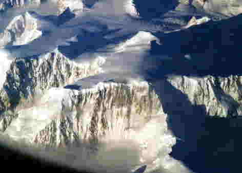 実際に歩いたわけではありませんが、帰国の飛行機の中から見えたアラスカ山脈があまりにきれいだったので写真に撮りました。
