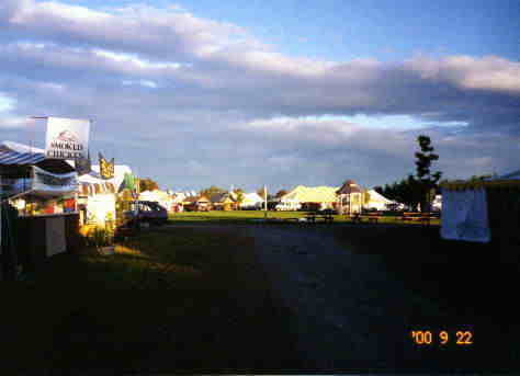 さあ!コモン・グランド・フェアー(みんなの大きなお祭り:農業祭)だ。トシの大きなトレーラーで機材を運び、確保されていた場所にブース(出店)を組み立てる。夜までかかって組み上げて、2人でビールとワインで前祝いをする。材木を組み込んだこの出店もトシのオリジナルで、家を見ても思ったが、トシのバイタリティには改めて感心した。夜の11時に家族が来て合流(私は起きれなかった)して、トシも暖かい寝袋をゲットしたようだ。