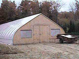 | そこからもう少し離れた隣に、車が何台もとまっているガレージがあった。トシモータースだ。「ここから生活を始めたんですよ。」と言うトシの顔には、自信と誇りを感じることができる。そして、そのまた隣に、テニスコートがすっぽり入ってまだ前後がありそうなくらいのでっかいスチール製のビニールハウスがあった。「この温室を作ることが私の夢だったんです。」と言う。ここで、椎茸の温室栽培をするそうで、この温室も、自分でキットを組み立てたそうである。来年には、この温室の中に椎茸がセットされて、スプリンクラーなどの設備が完備された椎茸ホットファームが出来上がっているだろう。何度も言うが、トシのバイタリティとフロンティア精神には頭が下がる。夢を持ち、それを実現させる男だ。 |