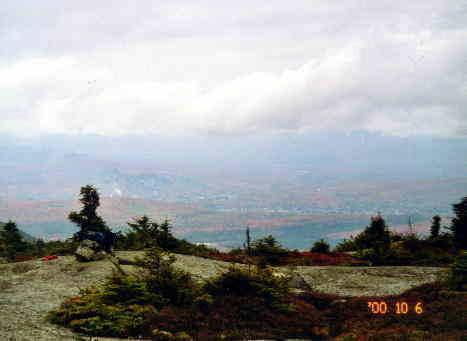 Saddle Back Mtn 1255m に到着した。すでにツリーラインを越え、岩肌がむき出しの縦走路になっている。真横から吹き上げてくる風が痛い。顔が向けられない。爆弾を抱えた膝の不安から、今のうちに行っておけるだけ行っておこうとする、私のはやる気持ちをトシに止められて、この日は山頂付近の小さな鞍部でビバークすることになった。 |