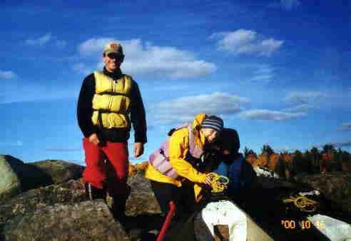 昨日移動した3マイルを空荷で歩いて上り、カヌーの出発地点までやってきた。ドライスーツを着込んで、ヘルメットとライフジャケットを着けて、これで準備OKだ。なんの準備だろう。水に落ちてもいい準備なのだ。気候は山口県で言うと雪の降っていない1月と言う感じだろうか。広島まで足を伸ばしたら、スキー場は満員という感じだ。しかし!ホワイトウオーターは甘くはなかった。最初は、川に落ちたときの急流からの脱出の仕方であった。やっぱり泳がなくてはいけないのか。ドライスーツを身につけているとはいえ、水は差すように冷たいだろう。 |