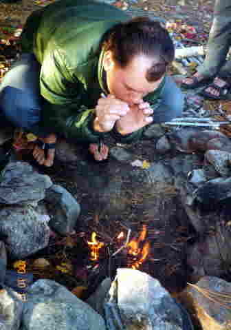 テントを張るプラットホームも常設してあって、トイレもある。ファイヤーサークルもあった。早速、薪を集めてたき火の用意をする。この日のトシの「いいハイキングですね。歩いて休むだけで他には何もしていない。山に入ったら、無理に説明する必要はないんですよね。」と言う言葉が忘れられない。