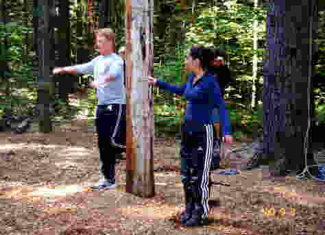 ボストンのハイスクールの学校行事に今年からこのHIOBSが組み込まれているそうで、先生も引率という形でありながら、コースには子供たちと一緒に参加して、このハイロープコースもコースの中では一人の生徒として参加していた。初めての現地でのハイロープコースの視察についても感じるところは山ほどあったが、この先生に、「子供たちがとても良い子供たちですねぇ。」と話しかけたところ、なんのてらいもなく、「そうだろう。とても優しくて、教養の高い子供たちなんだ。」と、本当に嬉しそうに自信を持って答えた先生に感動した。先生がこんな気持ちで子供たちに接していれば、子供たちが先生を信頼するのも当然だ。教職としてのプロ意識をここで見たような気がした。 |