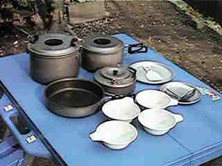 テフロンまではいかないにしても、内側に加工がしてあるコッフェルセットです。 フライパンが結構役に立っていて、いろいろな調理に使われています。