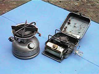 左側は、コールマンのストーブで購入時7000円くらい。右側は、オプティマスの小型ストーブで購入時1万2千円くらいでした。オプティマスは実に小型で気に入っていますが、メンテナンスがちょっと気になります。コールマンは本当に丈夫です。重いけど・・・。