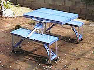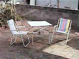 イスは当時980円で、風呂ふたも含めてテーブルは4000円くらいでした。最近は、アルミ製の軽いイスが出回っています。壊れたら買い換えようと思うのですが、まだまだ現役で活躍しそうです。気に入っています。