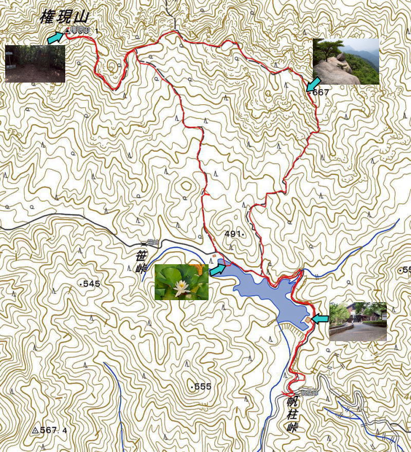 山頂に展望ありませんでしたが、少し先に展望所がありました。 三角点の前には、権現という名の通り祠(の跡?)。 今日も無事に登らせていただいて ありがとうございます。 |