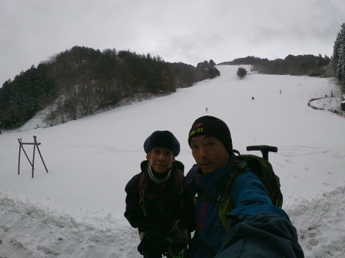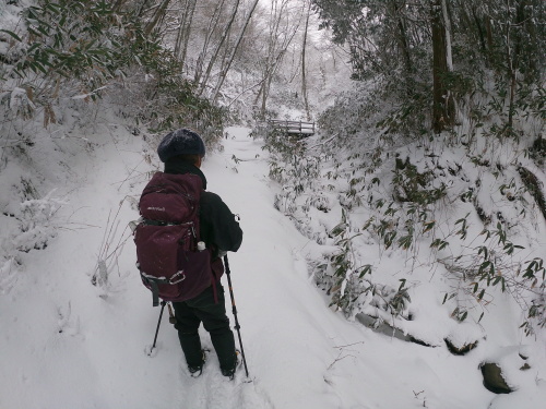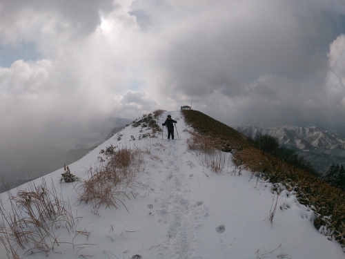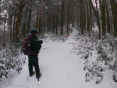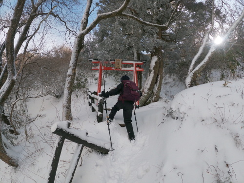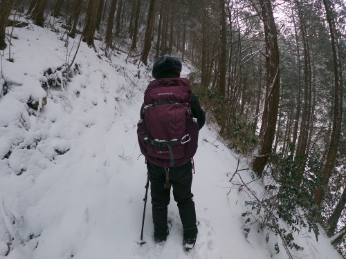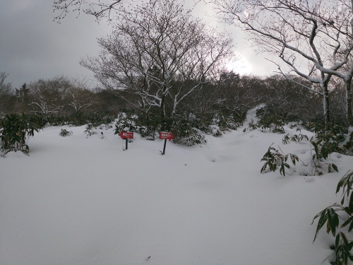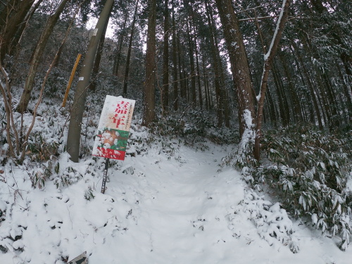 | 10:00 直登コースと熊野神社コースの分岐です 直登コースはこの季節吹き溜まりが激しくて難しいです |