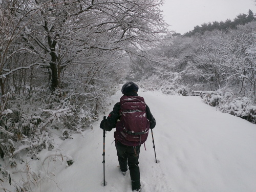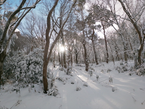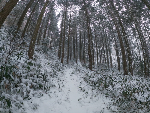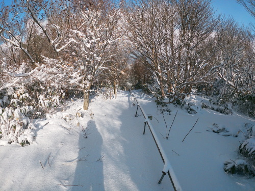 | 8:40 登山道に入った途端世界が変わります 新しい雪が世界を覆っていました |