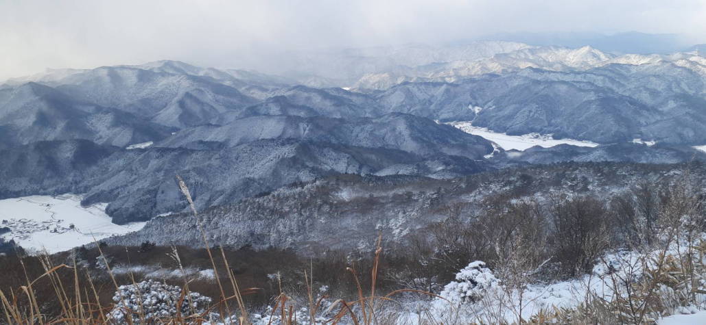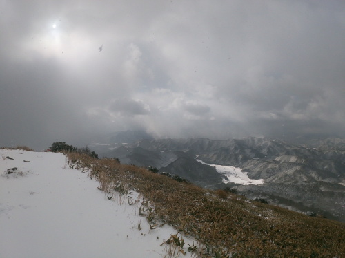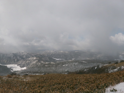 | 10:23 時折雲の隙間から下界が垣間見れます 神代集落も白く覆われていました |