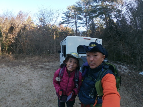 | 8:08 おおの自然観察センター入口手前の広場に車を停ました 思っていたより空気が冷たく ダウンを着て出発です |