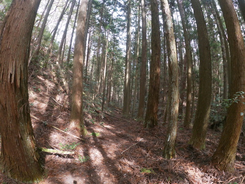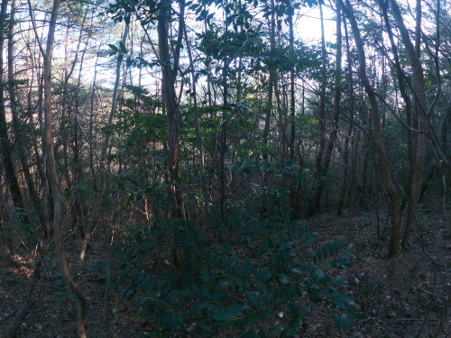 | クリスマスツリーのようにサカキの木が立っていました この山はサカキとシキミの山でした |